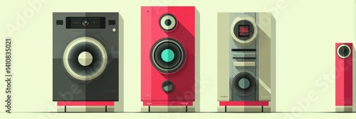 Obraz premium A vibrant collection of retro-inspired speaker designs, showcasing a blend of...