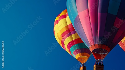 © Huzaifa, Obraz premium A vibrant, colorful hot air balloon festival with a clear area for text
