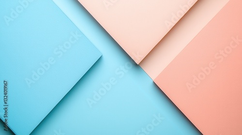 © Koko Studio, Obraz premium A vibrant composition of overlapping pastel-colored papers, featuring shades of blue and peach, creating a modern, minimalist aesthetic.