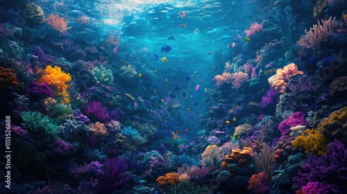 © samrit, Naklejka premium A vibrant coral reef teeming with marine life, showcasing the colorful and fascinating world beneath the waves