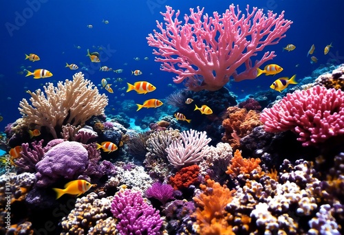Fototapeta premium A vibrant coral reef teems with life, featuring a diverse array of fish...