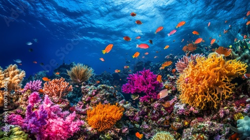 Naklejka premium A vibrant coral reef with a variety of colorful corals and small fish isolated