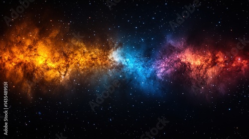 Naklejka premium A vibrant, cosmic landscape of swirling nebulae in deep space.