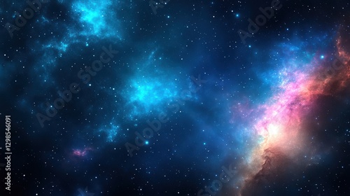 Fototapeta premium A vibrant cosmic scene featuring interstellar clouds and twinkling stars against a deep space backdrop, Ideal for projects related to astronomy, science fiction, or digital art,