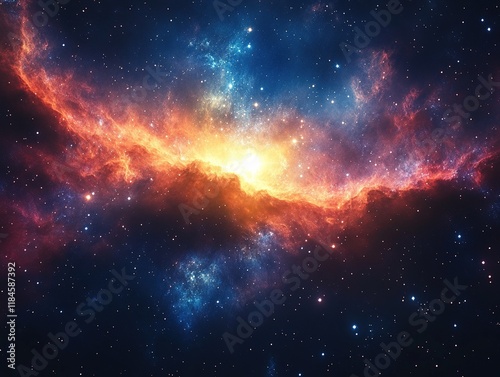 © Rinda, Fototapeta premium A vibrant cosmic scene showcasing colorful nebulae and stars in the vast universe.