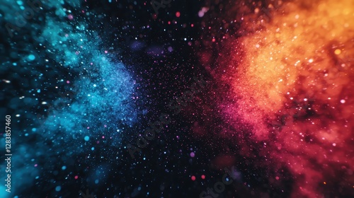 Fototapeta premium A vibrant cosmic scene with swirling clouds of blue and orange particles set...