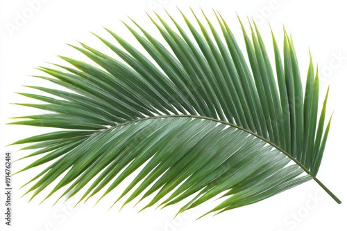 © Ibnu, Obraz premium A vibrant, curved palm leaf isolated on a stark white backdrop