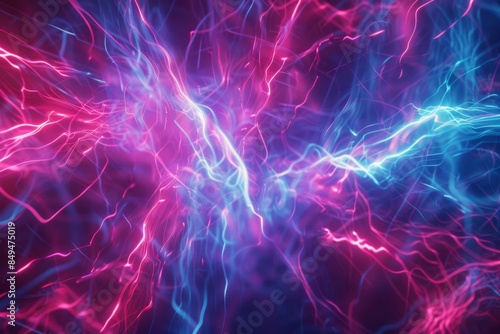 Obraz premium A vibrant 3D abstract background filled with dynamic electric neon streaks,...
