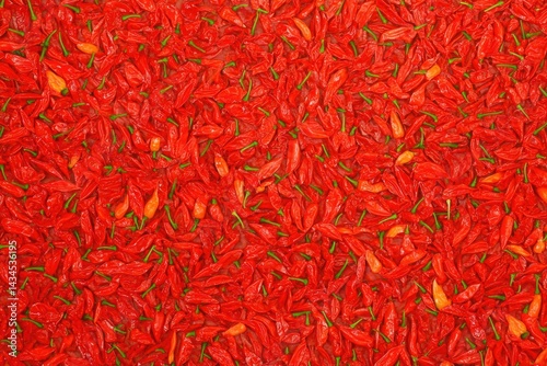 © jayantha, Fototapeta premium A vibrant, dense collection of red chili peppers, showcasing their rich color and texture.