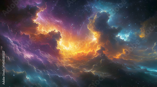 Fototapeta premium A vibrant depiction of swirling cosmic clouds.