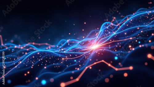 Fototapeta premium A vibrant digital abstract with blue and orange hues representing cloud-based...