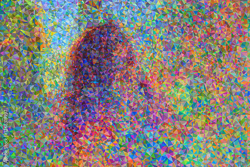 © Helen, Fototapeta premium A vibrant digital artwork featuring a dynamic composition of colorful triangles, creating a modern and abstract background.