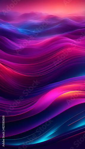 Obraz premium A vibrant digital artwork featuring abstract waves in shades of purple, pink,...