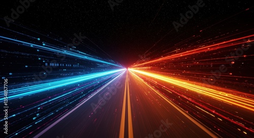 Obraz premium A vibrant digital artwork featuring dynamic blue and orange light streams...
