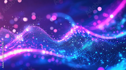 Fototapeta premium A vibrant digital composition features glowing purple and blue gradients...