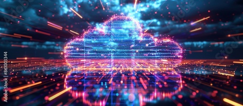 Fototapeta premium A vibrant digital illustration of cloud computing with dynamic data streams...