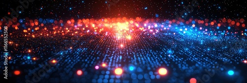 Fototapeta premium A vibrant digital landscape with colorful particles and light effects, suggesting technology.