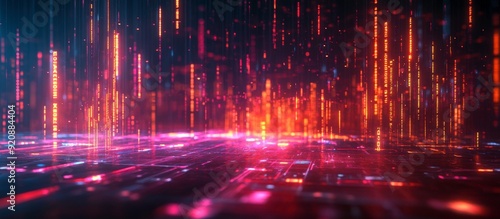 © kinara art design, Fototapeta premium A vibrant digital landscape with glowing lines and particles, representing data flow and technology.