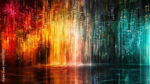 Fototapeta premium A vibrant digital waterfall with cascading data streams in various colors,...