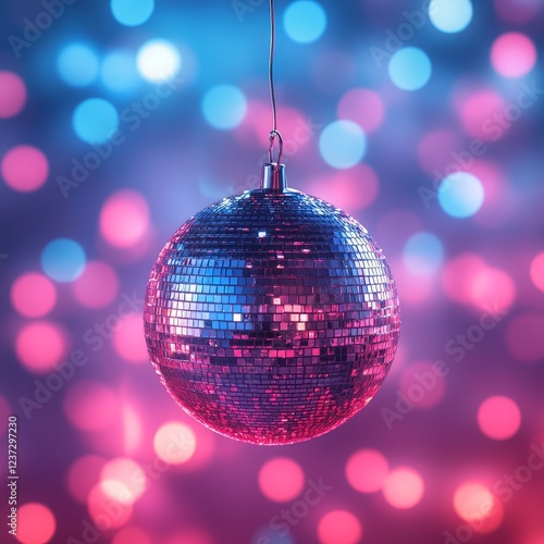 Fototapeta premium A vibrant disco ball reflecting colorful lights against a dreamy pink and...
