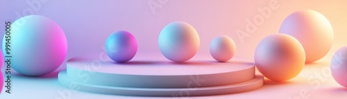 Obraz premium A vibrant display of colorful spheres on a sleek platform, creating a modern...