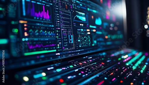 © Pumapala, Obraz premium A vibrant display of data analytics on a modern computer interface.