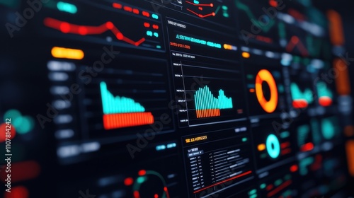 Obraz premium A vibrant display of data visualization featuring graphs, charts, and...