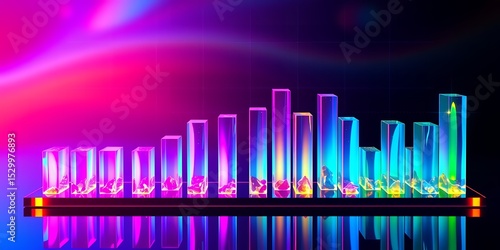 © Habibur Rahaman, Obraz premium A vibrant display of translucent bar graph with glowing shards against a colorful backdrop