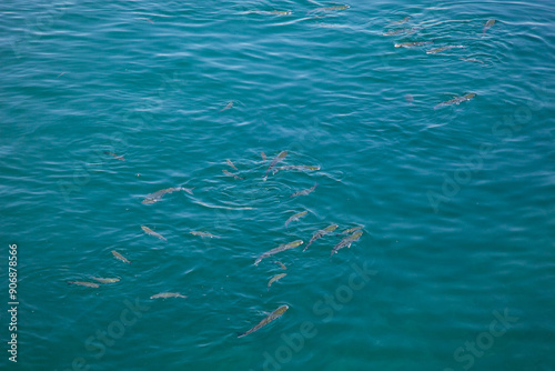 © Jmanita, Fototapeta premium A vibrant display of various fish species from the Ria Formosa in Algarve, Portugal, showcasing the region's rich marine biodiversity in a crystal-clear aquatic setting.