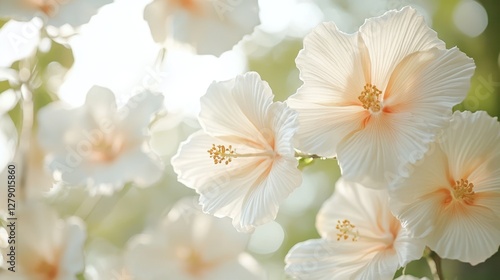 Fototapeta premium A vibrant display of white flowers basking in the warm sunlight, showcasing...