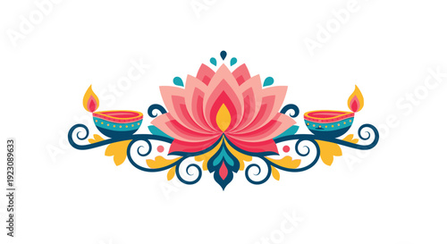 © HOLYLINE ART, Obraz premium A vibrant diya lamp with a burning flame isolated on white