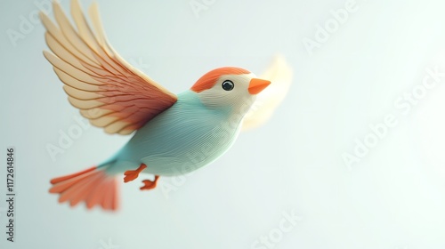 © Abdul, Obraz premium A vibrant dove with colorful wings in flight, isolated on a white background.