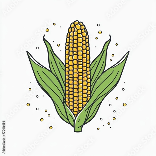 Obraz premium A vibrant ear of corn stands tall with its green leaves framing it, set...