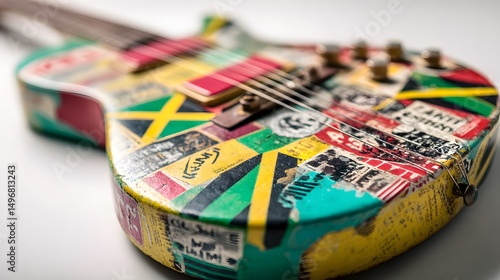 Fototapeta premium A vibrant electric guitar adorned with an array of colorful stickers in an...