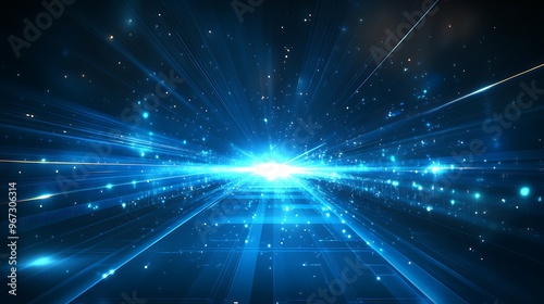 Obraz premium A vibrant explosion of blue light beams radiating from a central point,...