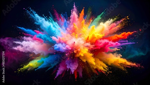 © Ysrclub, Obraz premium A vibrant explosion of colorful powder against a dark background, creating a visual spectacle