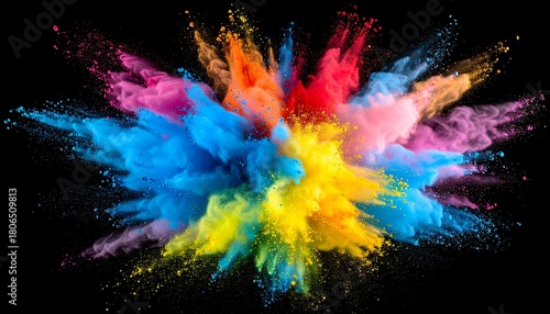 © lucky, Naklejka premium A vibrant explosion of colorful powder against a stark black background