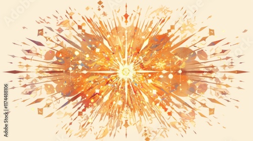© Krittin, Obraz premium A vibrant explosion of light and color, showcasing dynamic rays and sparkles against a soft background.