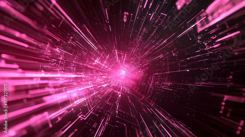 Naklejka premium A vibrant explosion of neon pink light beams radiating outward, symbolizing energy bursts or futuristic visual effects.
