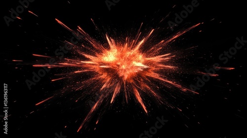 Fototapeta premium A vibrant explosion of orange and red colors against a black background,...