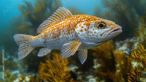 Fototapeta premium A vibrant fish swimming among underwater vegetation.