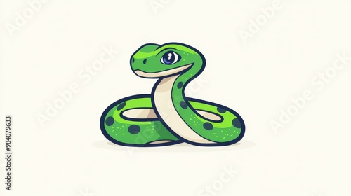 © CrazyJuke, Naklejka premium A vibrant flat illustration of a cunning green snake, textured and ready to pounce in a playful yet striking manner.