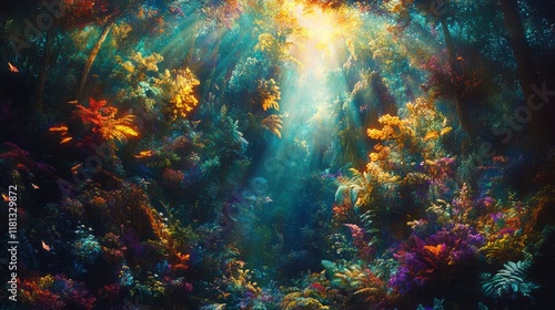 Fototapeta premium A vibrant forest shiny background