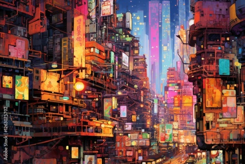 © BloomArt, Obraz premium A Vibrant Futuristic Cityscape At Night