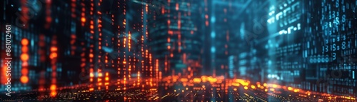 Obraz premium A vibrant, futuristic cityscape featuring glowing data streams and high-tech...