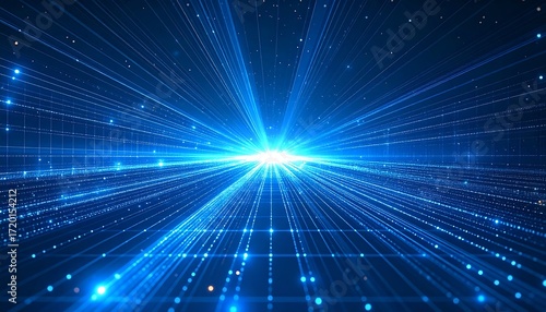 © Geriano, Obraz premium A vibrant, futuristic digital representation of interconnected energy lines and a central bright light. It presents a high-tech visual abstract