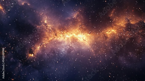 Fototapeta premium A vibrant, galaxy-like nebula in a dark night sky with stars twinkling brightly.
