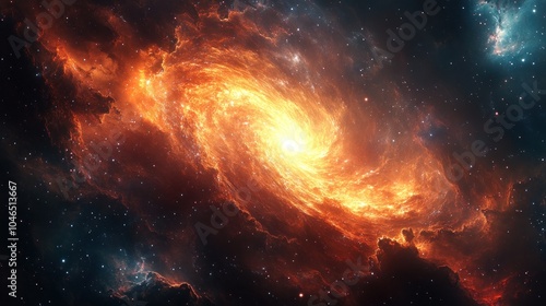 Fototapeta premium A vibrant galaxy swirling with orange and yellow hues in space.