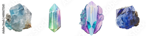 © Nika, Fototapeta premium A vibrant gemstone, with multifaceted cuts, sparkles atop a clear backdrop, its colors standing out in vivid contrast.