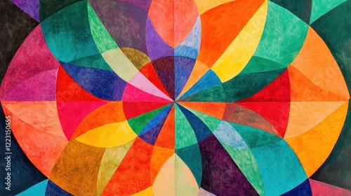 © gentho, Obraz premium A vibrant geometric pattern with overlapping shapes in various colors creating a dynamic visual effect.